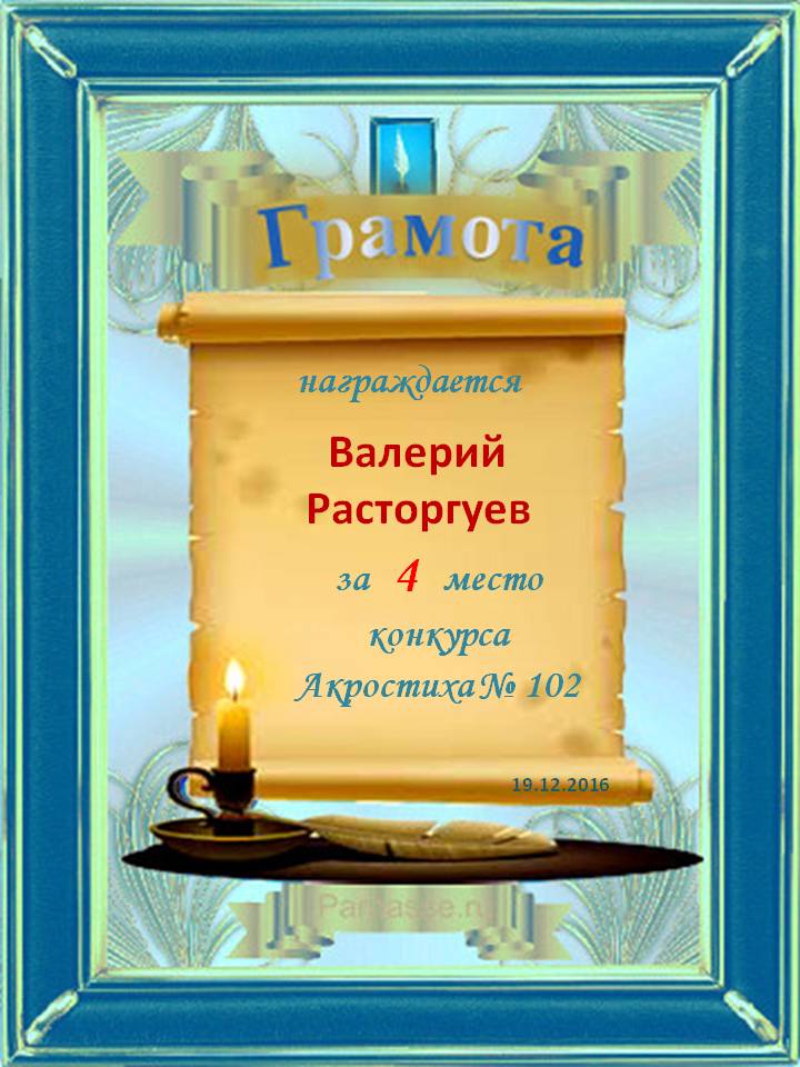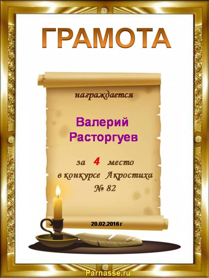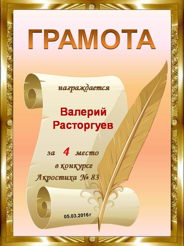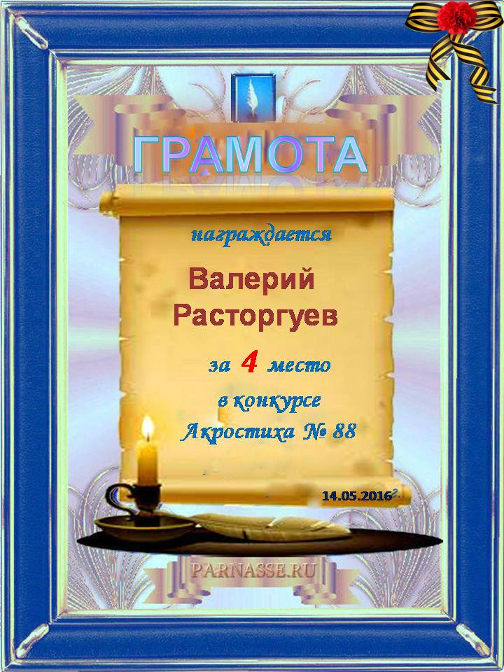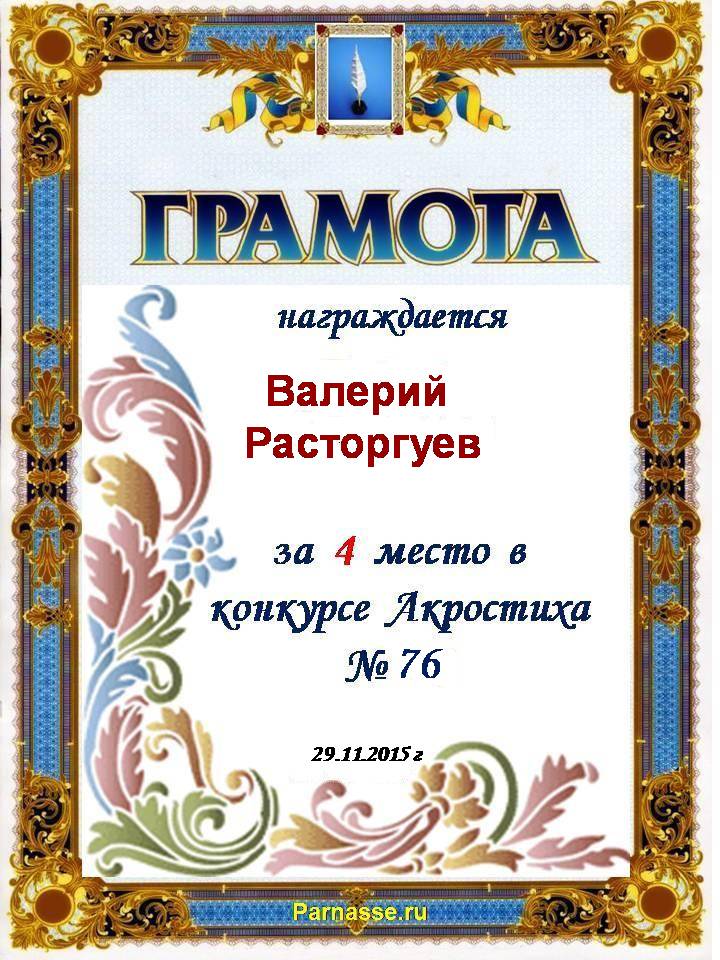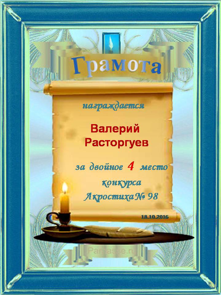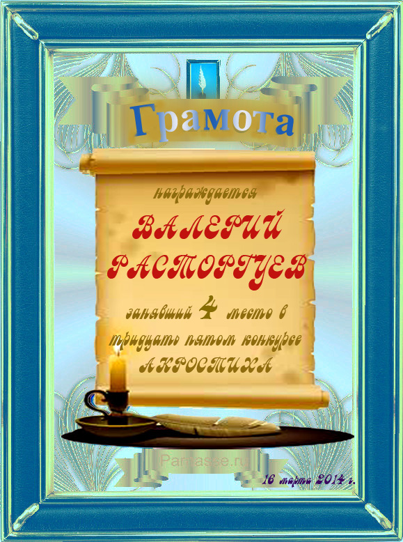 Похвальная грамота за 4 место и активное участие в конкурсе лимериков № 57+ (27.07.2014 г.)