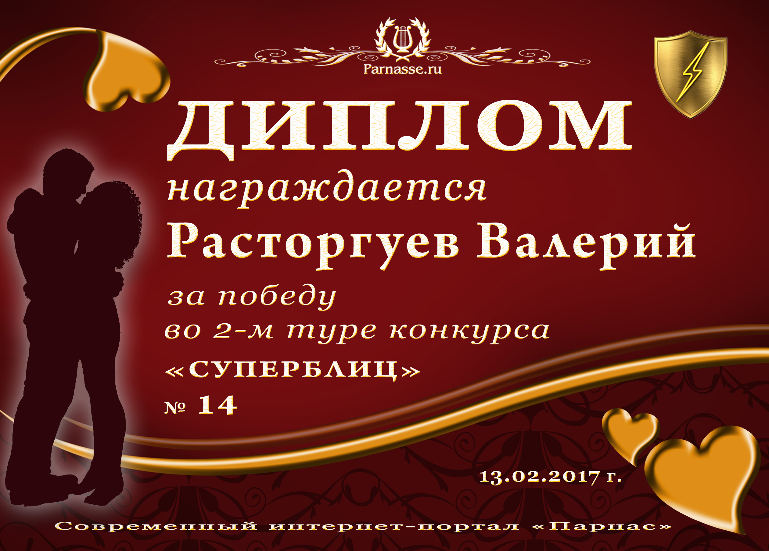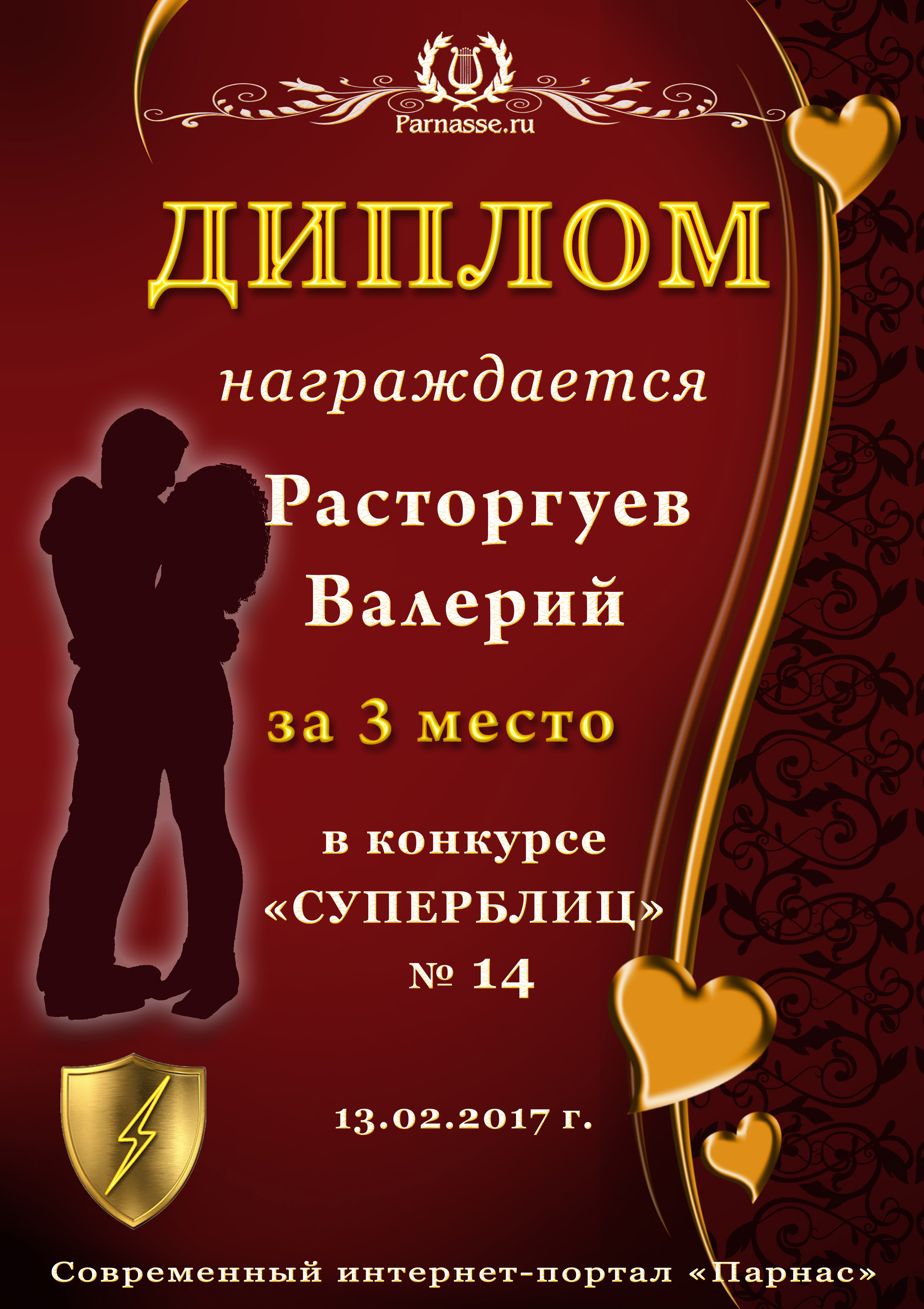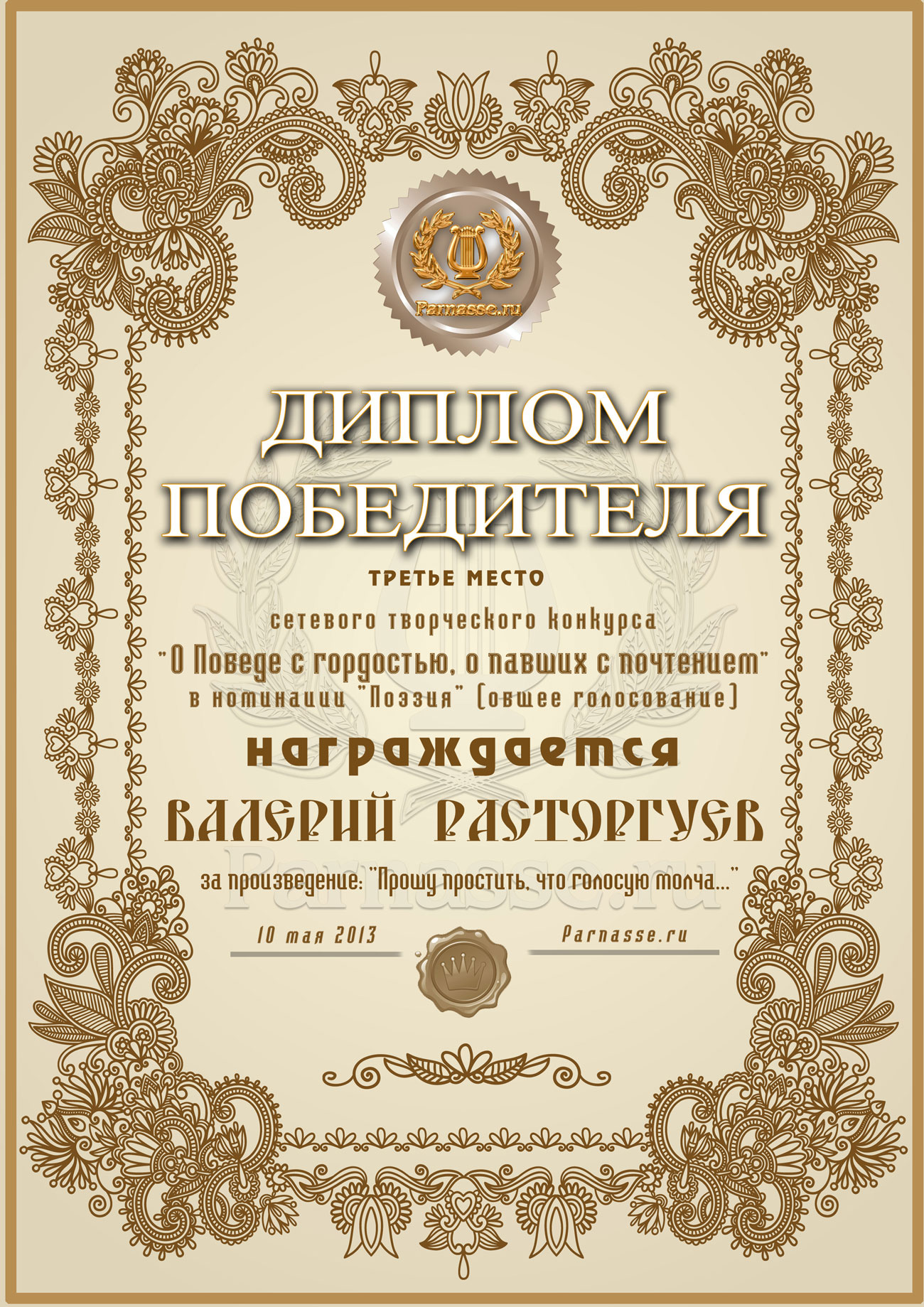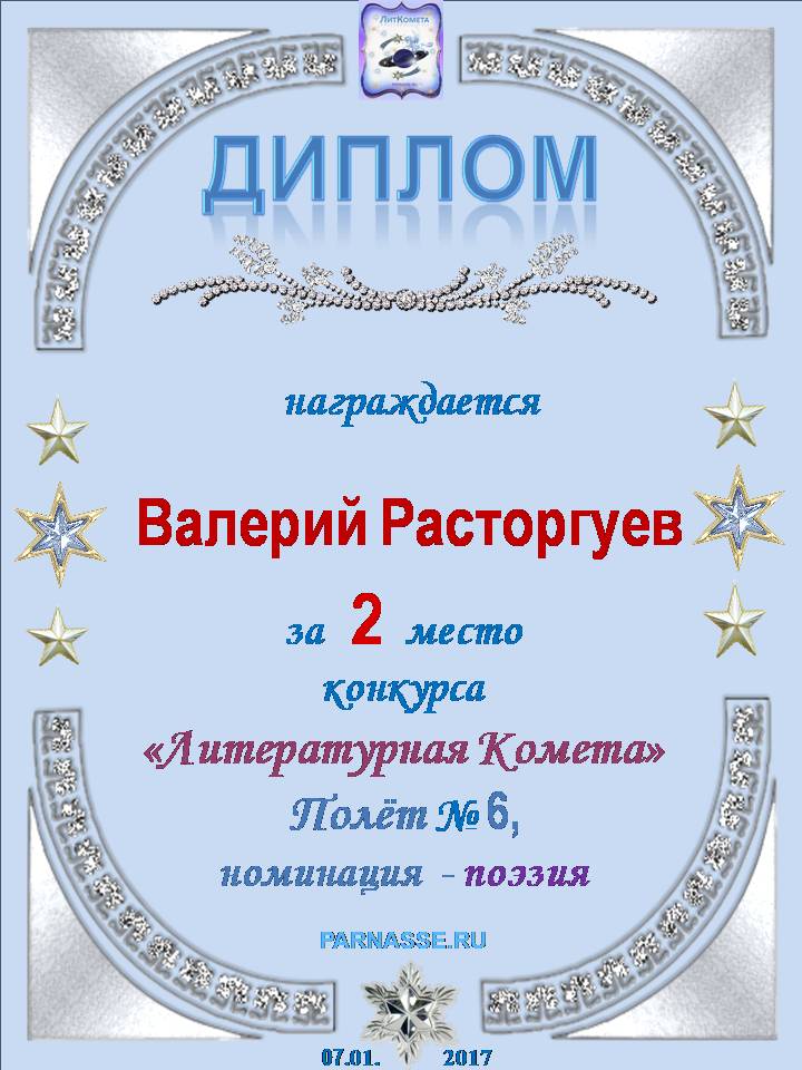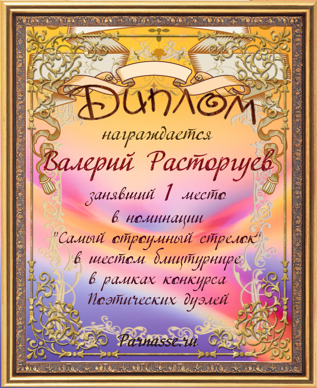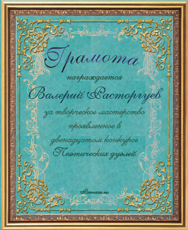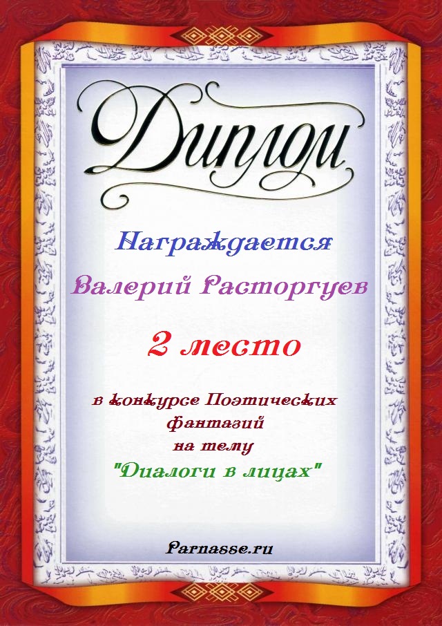Диплом за 3-е место в номинации "Лучшая дуэль" в восьмом конкурсе поэтических дуэлей
