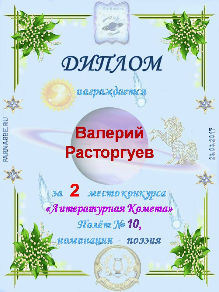 Диплом в конкурсе поэзии "Прикосновение Солнца"