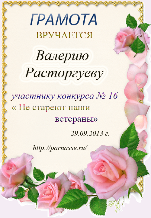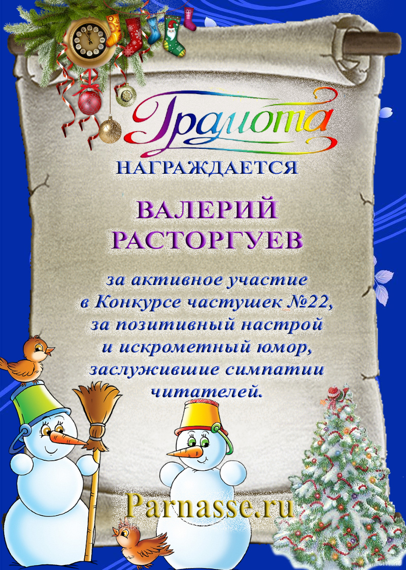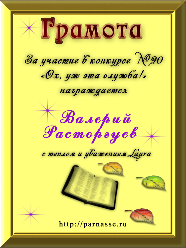 Почётная грамота за участие в конкурсе лимериков № 19 (03.09.2012г.)