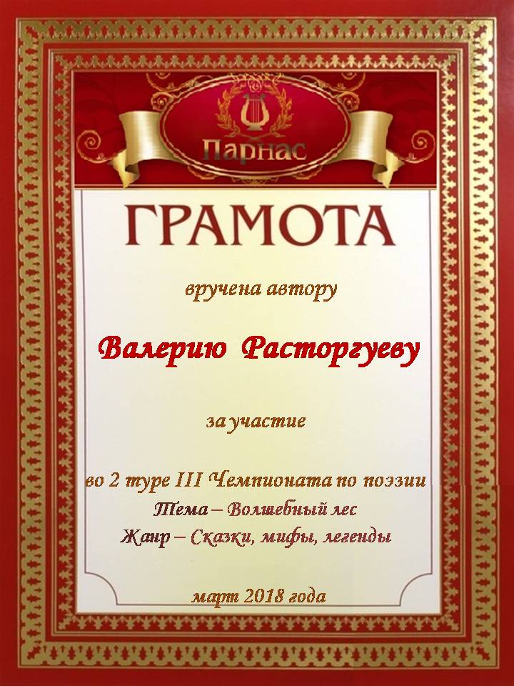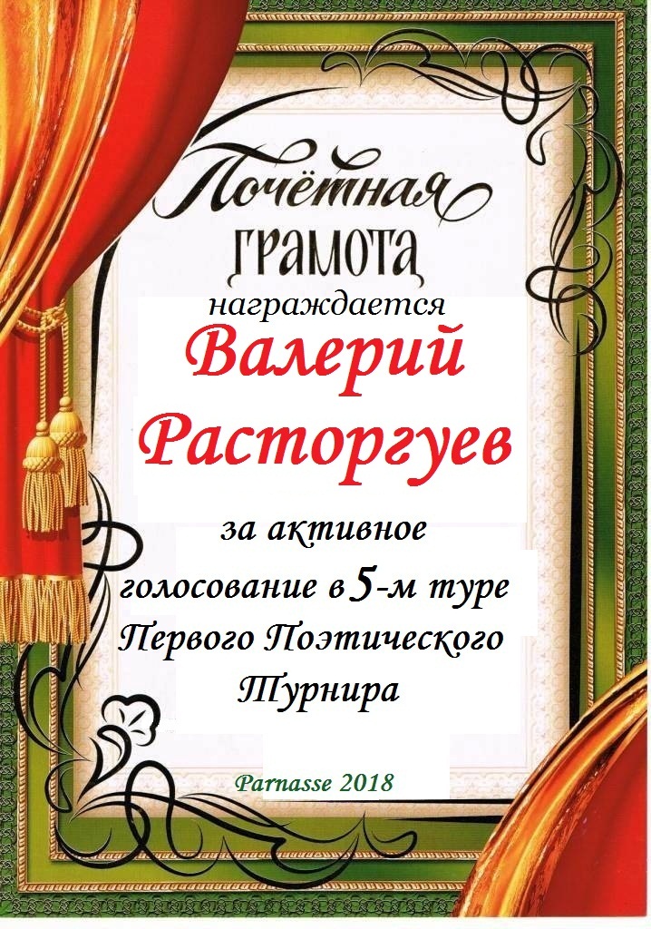 За участие в Пятом Поэтическом Турнире