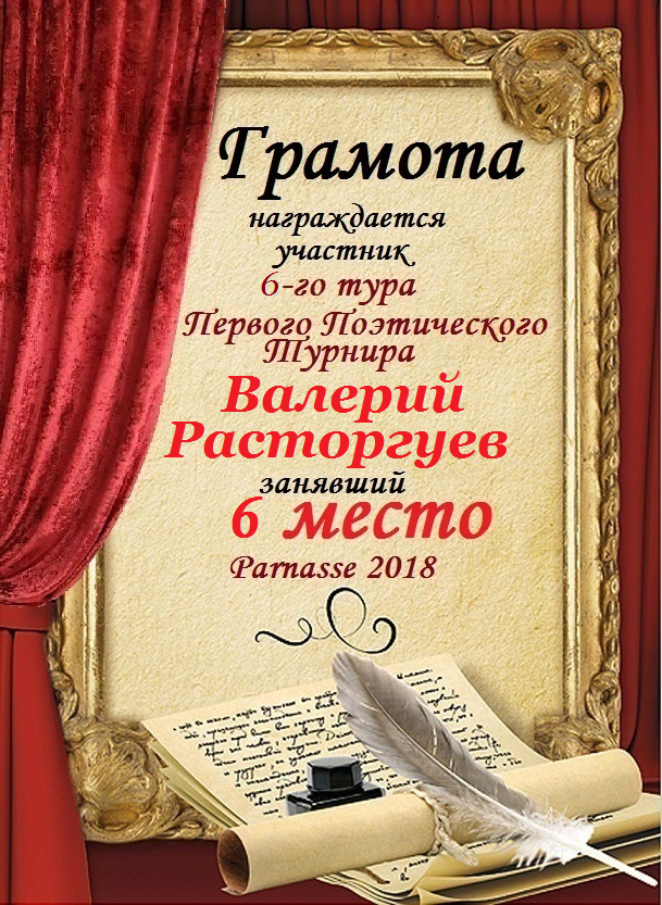 Четвёртое место в судейском голосовании 2 - го тура Пятого Поэтического Турнира