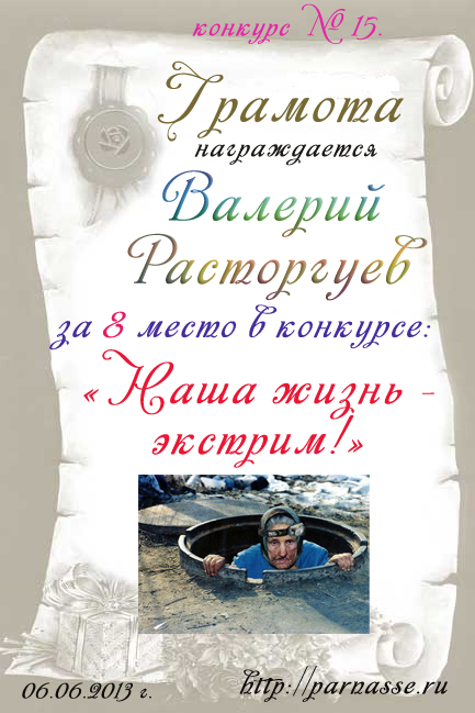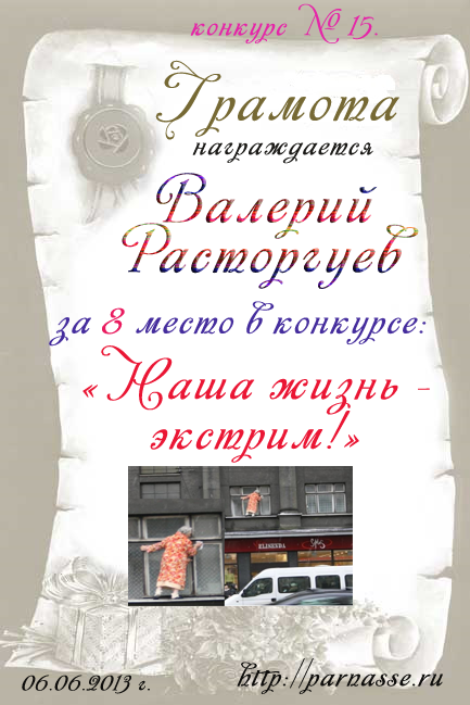 Грамота за 6 место в 15 конкурсе "Наша жизнь - экстрим"