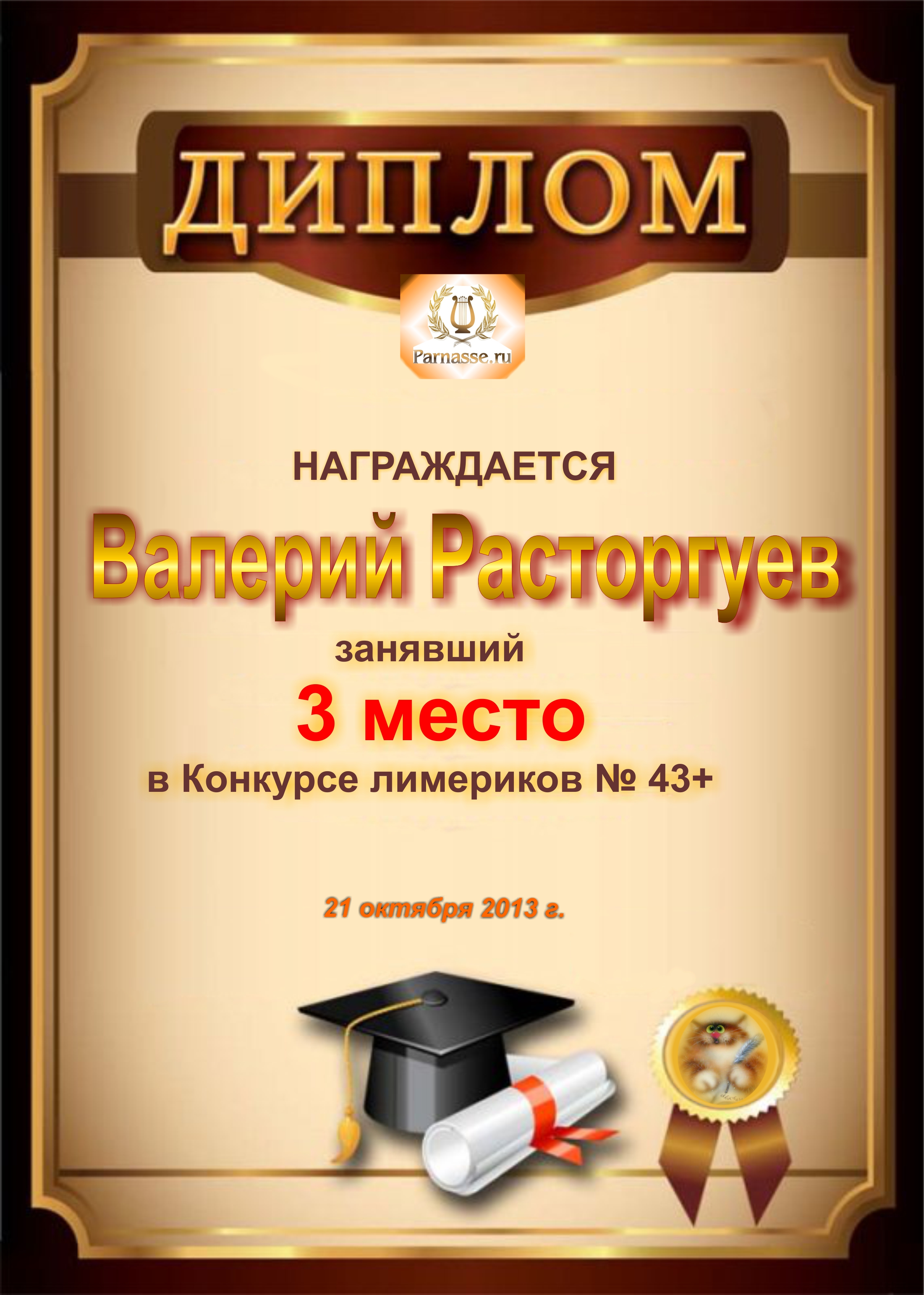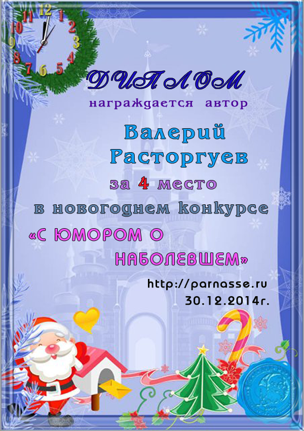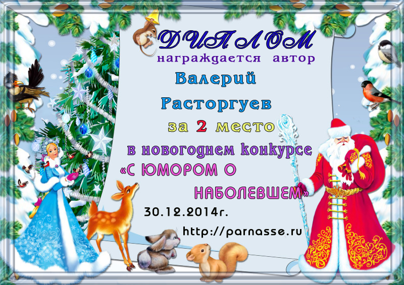 Диплом за победу и 3 место в дополнительной номинации конкурса лимериков № 47+ (29.12.2013 г.)