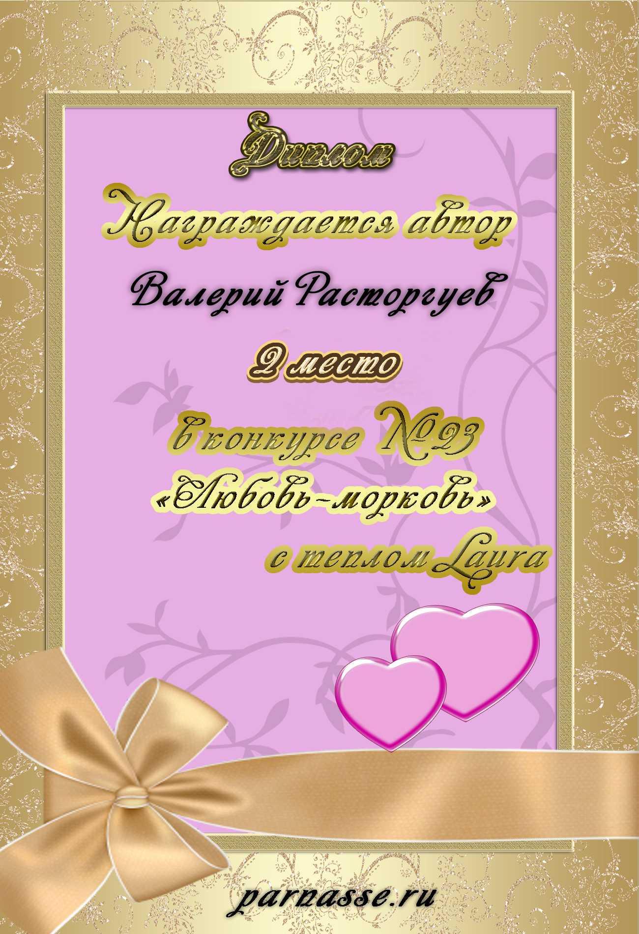 Третье место по итогам конкурса «Любви пылающий костёр», народное голосование. Поздравляем с прекрасной победой!