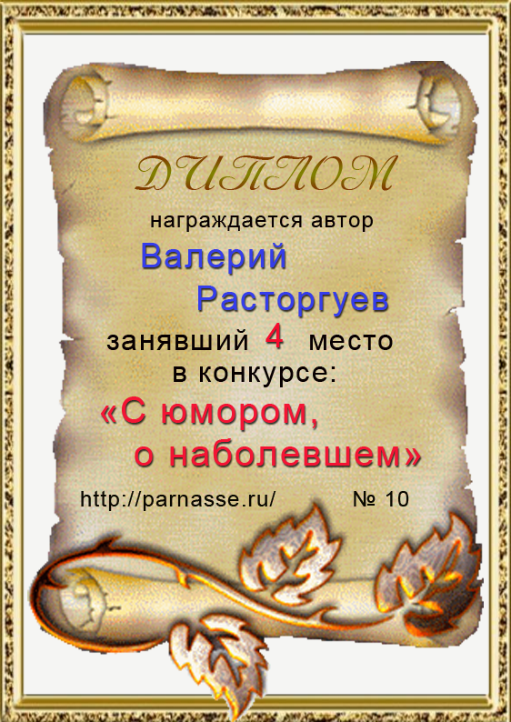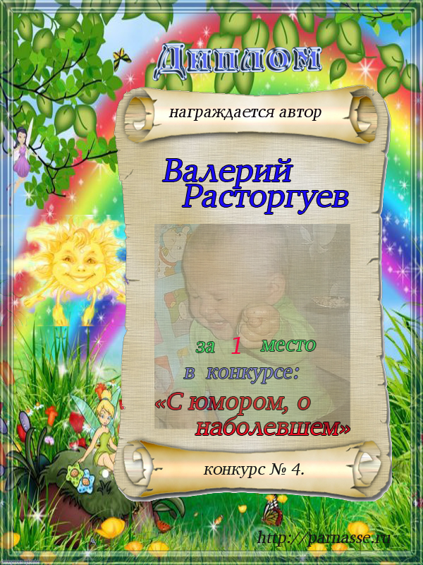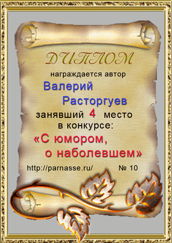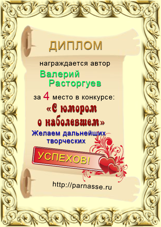 Диплом за 4 место в конкурсе "С юмором. о наболевшем" № 5.!