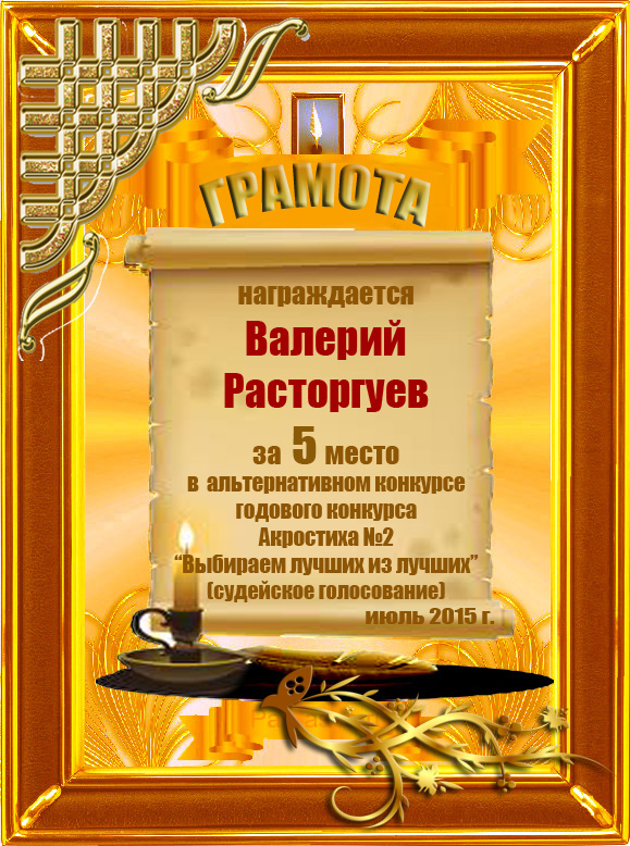 Грамота за 5-е место в номинации "Лучший дуэлянт" по итогам судейского голосования в седьмом конкурсе поэтических дуэлей