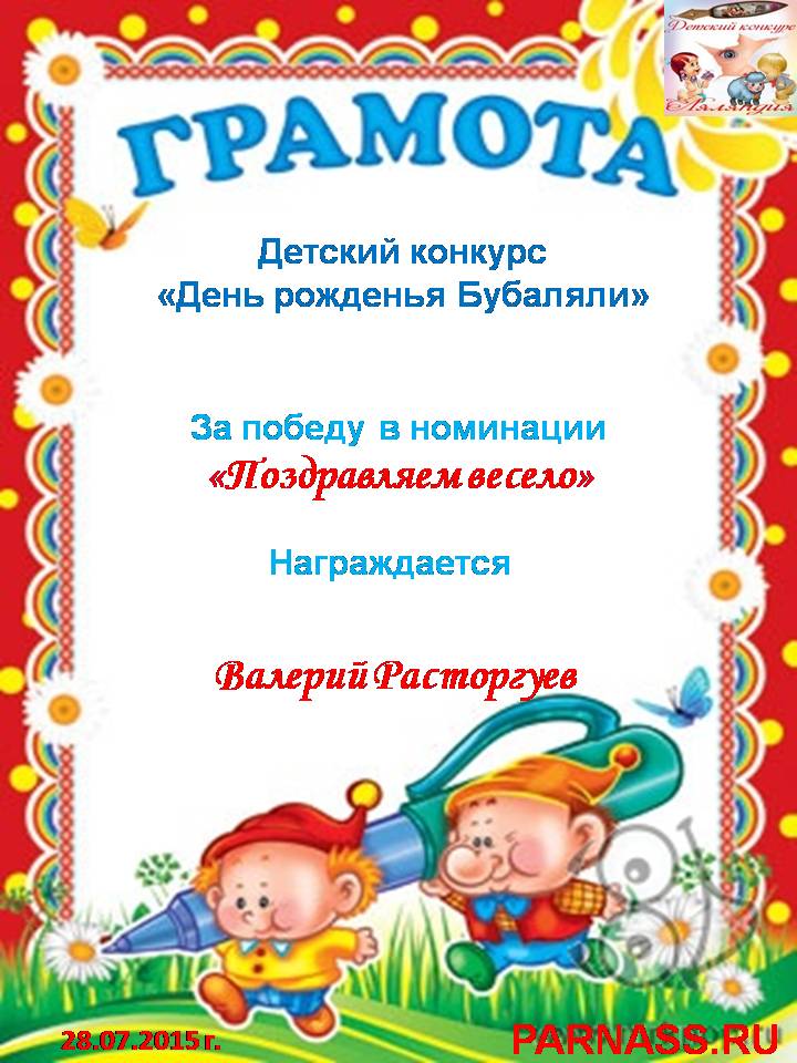 Похвальная грамота за активное участие в конкурсе лимериков № 57+ (27.07.2014 г.)