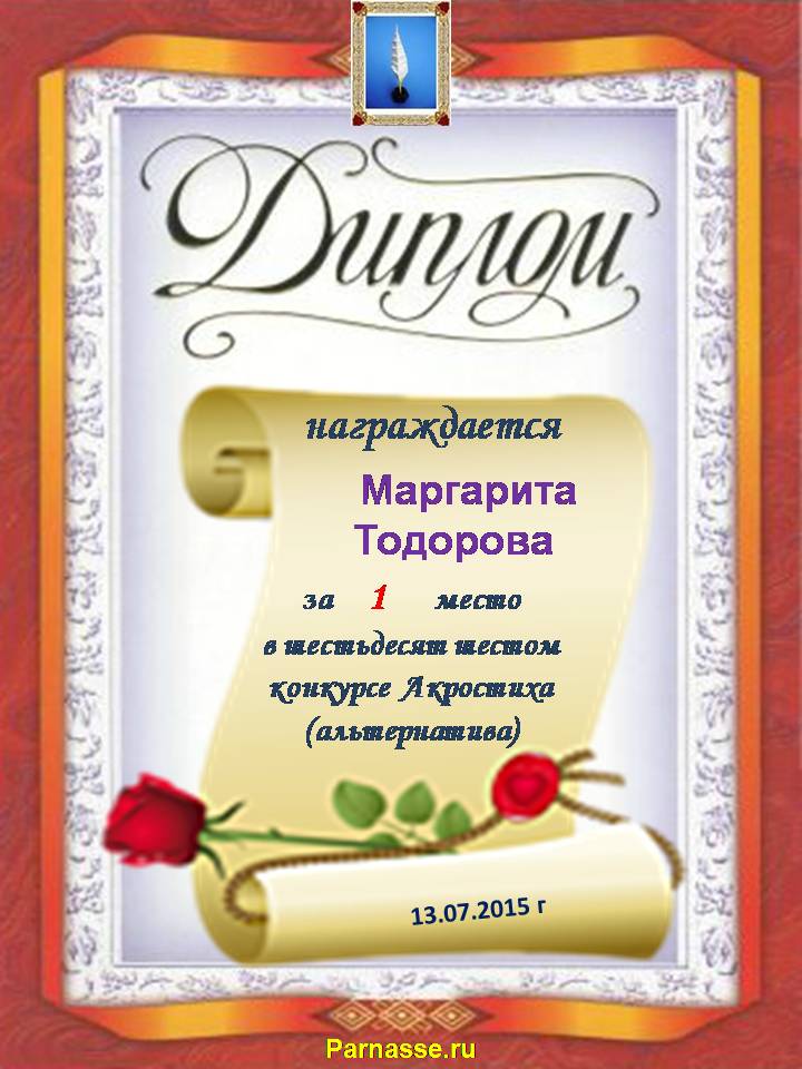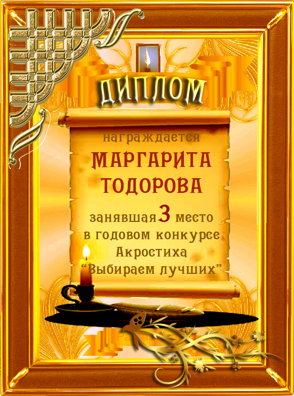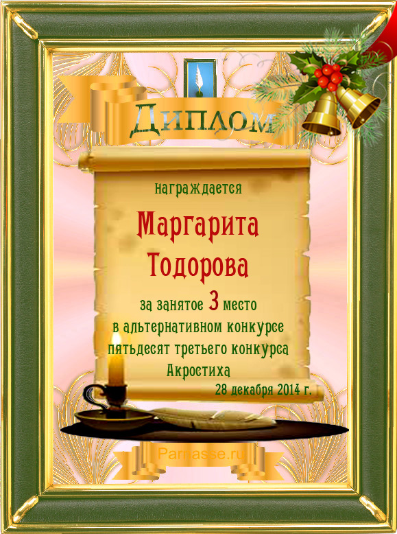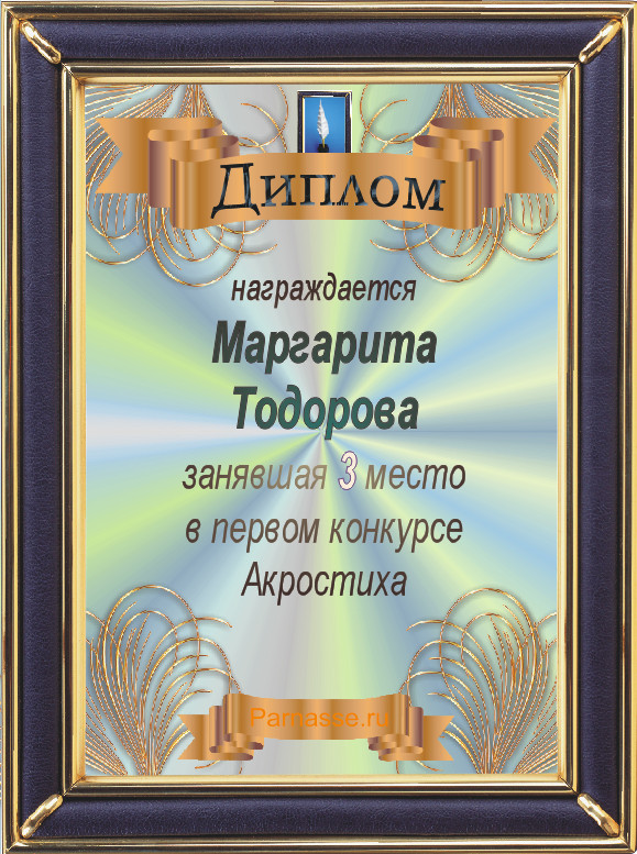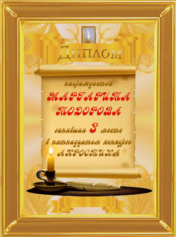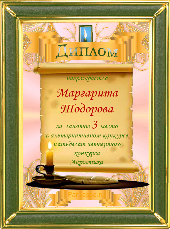Диплом за 3 место в 103 конкурсе АКРОСТИХА (Альтернатива)! ПОЗДРАВЛЯЮ!
