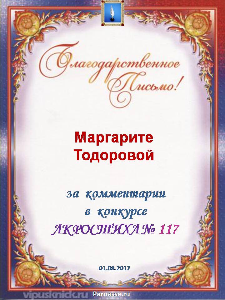 Благодарность активному комментатору в конкурсе Акростиха № 117!СПАСИБО БОЛЬШОЕ!