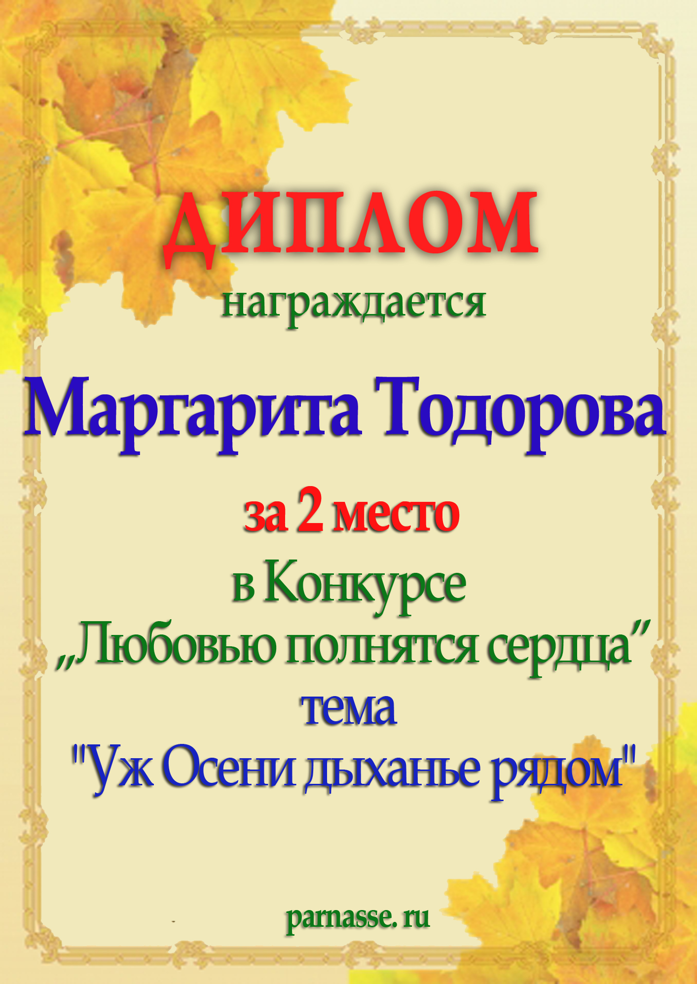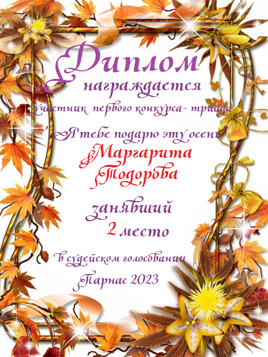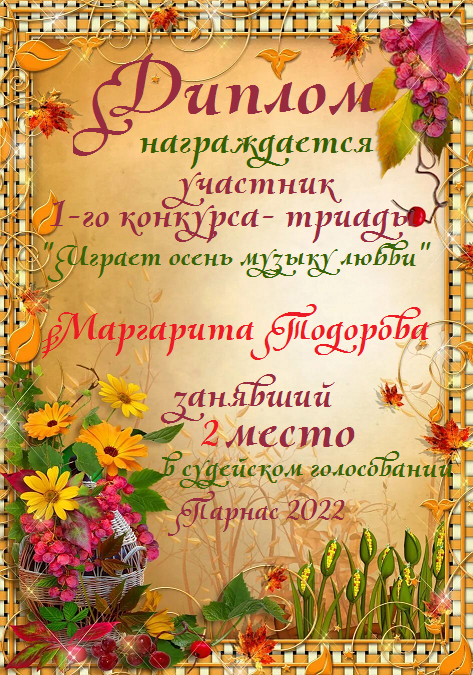 Второе место в судейском голосовании по итогам первого конкурса - триады "Играет осень музыку любви"