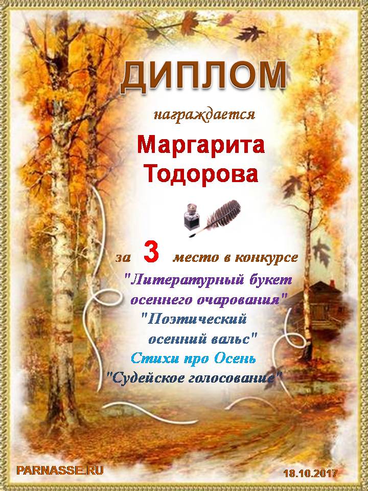 Поздравляем с 3 местом в конкурсе "Литературный букет осеннего очарования" - номинация Поэзия, судейское голосование!