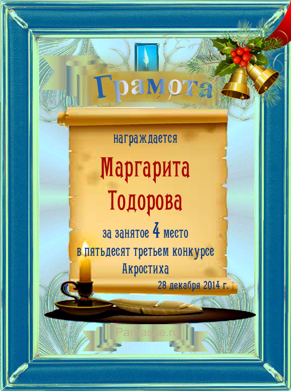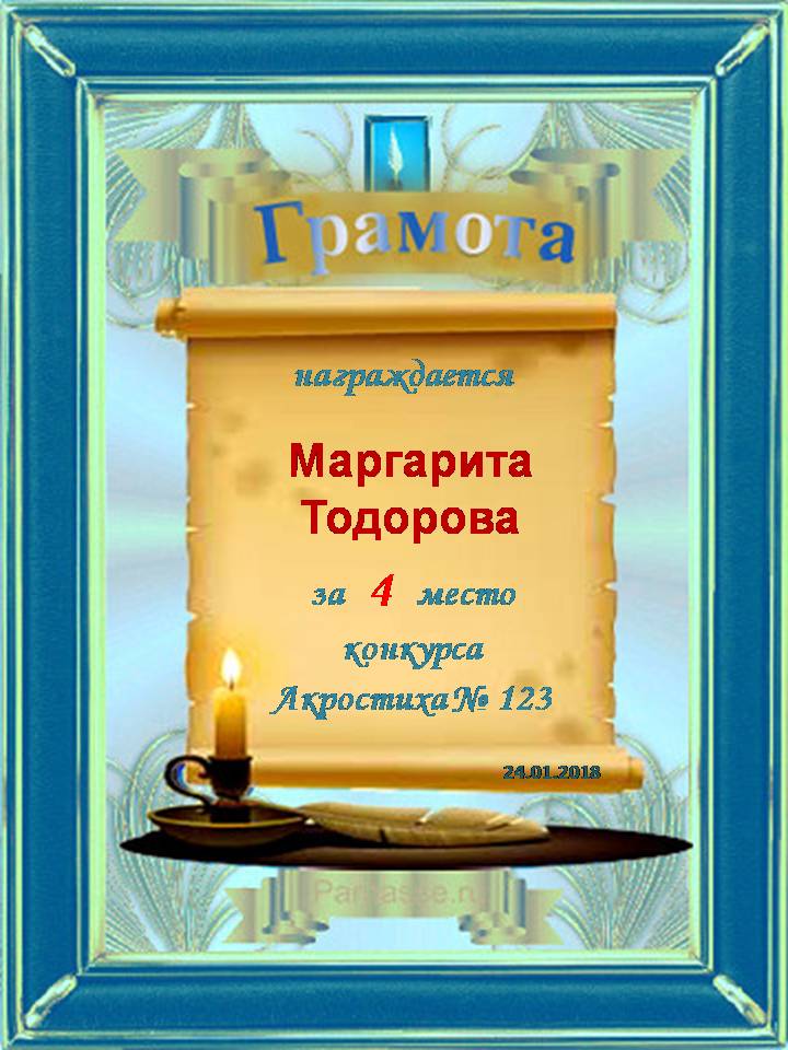 Грамота за 4 место в 124 конкурсе АКРОСТИХА (Альтернатива)! ПОЗДРАВЛЯЮ!
