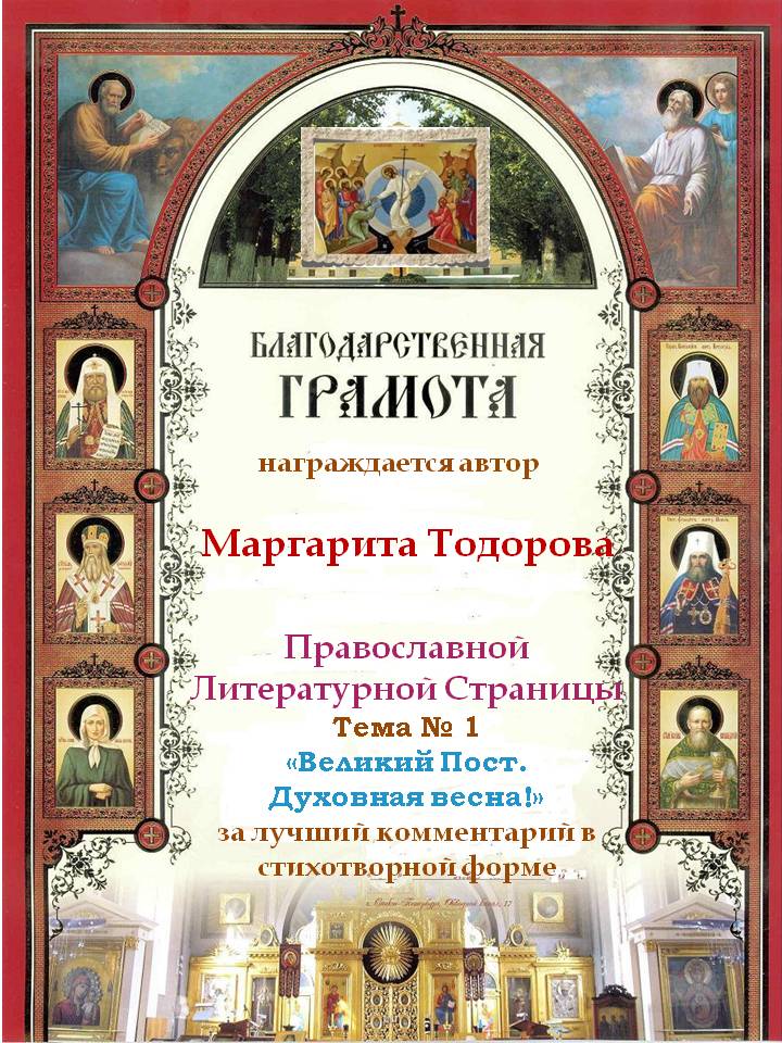 За лучшие комментарии в стихотворной форме к произведениям Православной Литературной Страницы, Тема № 1 "Великий Пост. Духовная весна!"