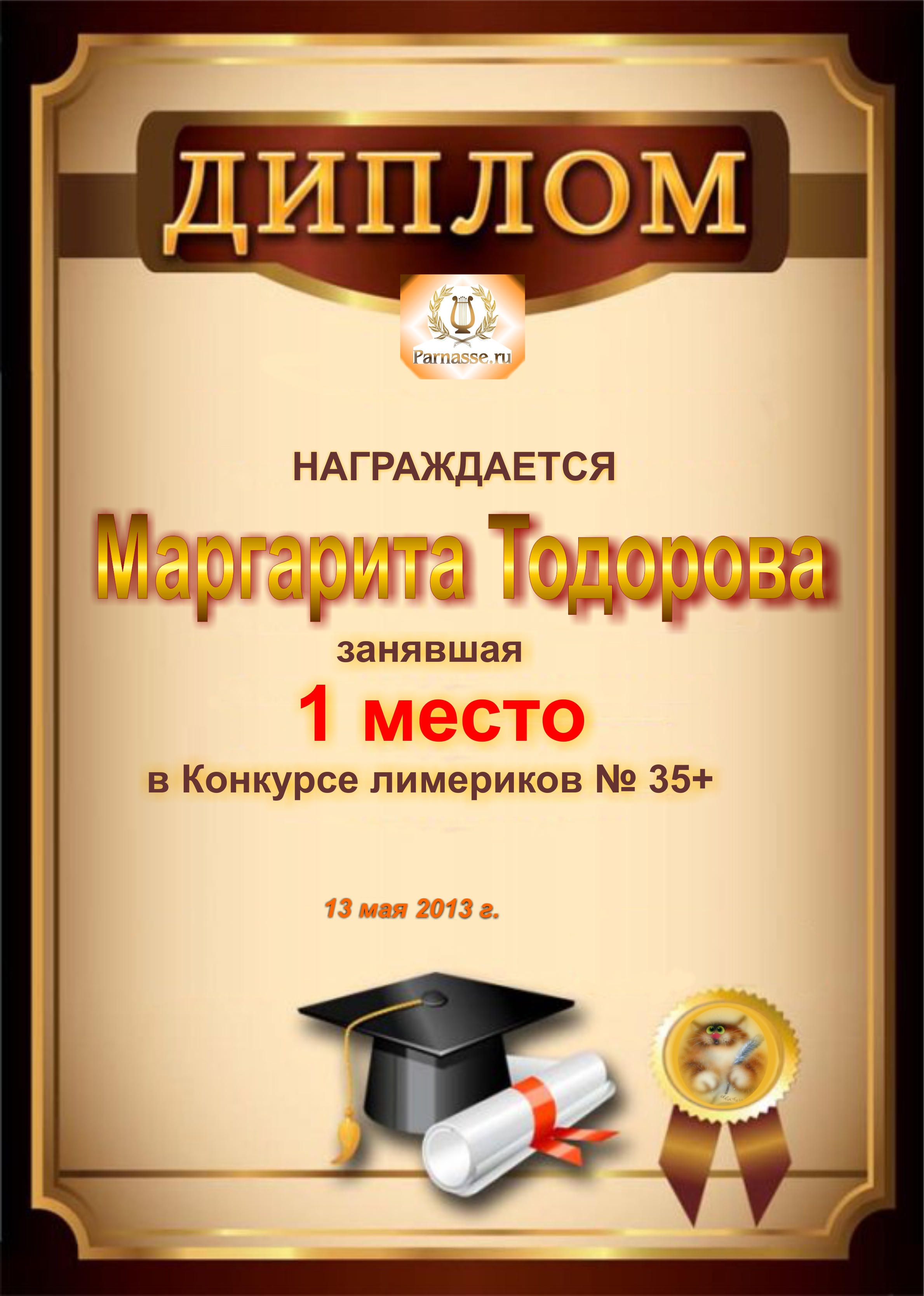 Диплом за 1 место в конкурсе лимериков №12 (20.05.2012.)