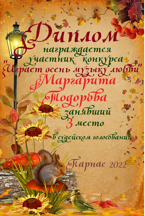 Третье место в судейском голосовании по итогам третьего конкурса - триады «Играет осень музыку любви