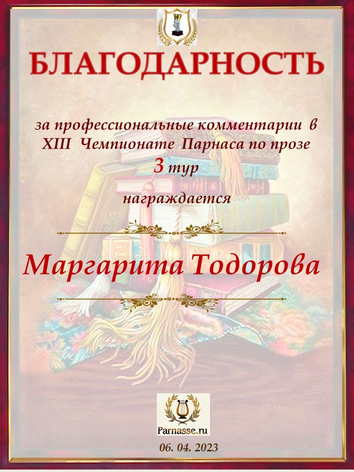 За комментарии в 6 туре IX Чемпионата Парнаса по прозе