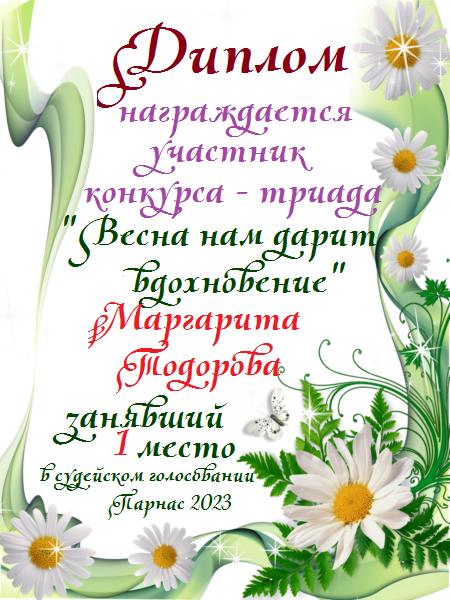 Первое место в судейском голосовании по итогам первого конкурса - триады "Весна нам дарит вдохновение"