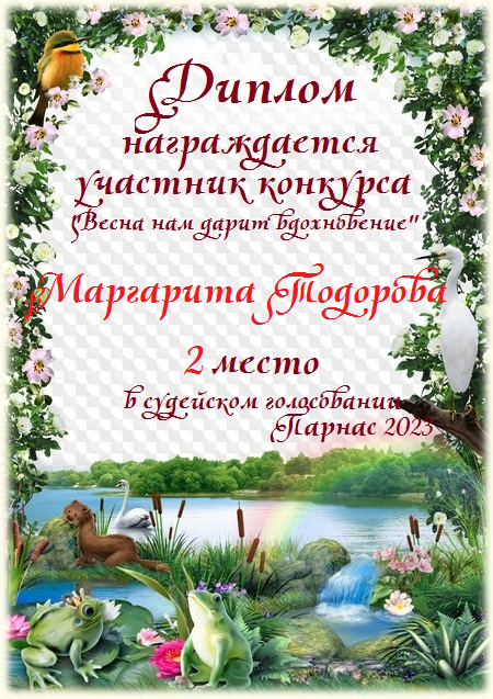 Второе место в судейском голосовании по итогам третьего конкурса - триада: "Весна нам дарит вдохновение"