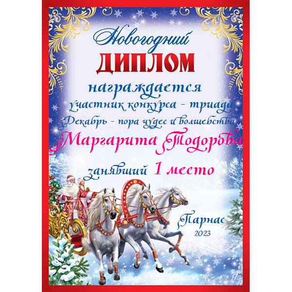 Первое место по итогам конкурса - триада "Декабрь - пора чудес и волшебства"