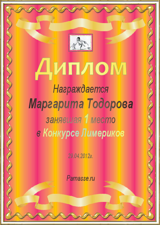 Диплом за 1 место в конкурсе лимериков №9 (29.04.2012.)