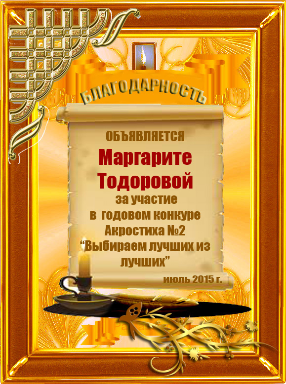 Грамота за 4 место в 113 конкурсе АКРОСТИХА (Альтернатива)! ПОЗДРАВЛЯЮ!