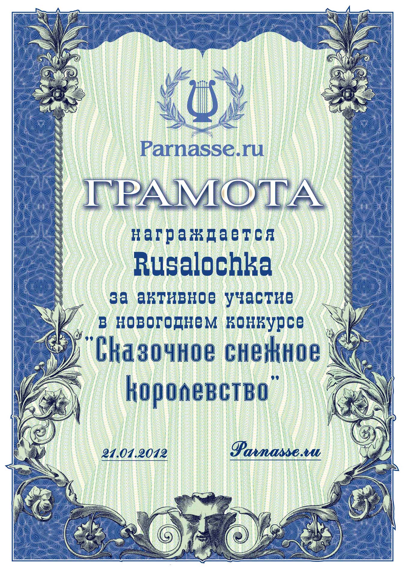 Грамота участника литературного конкурса "Сказочное снежное королевство"