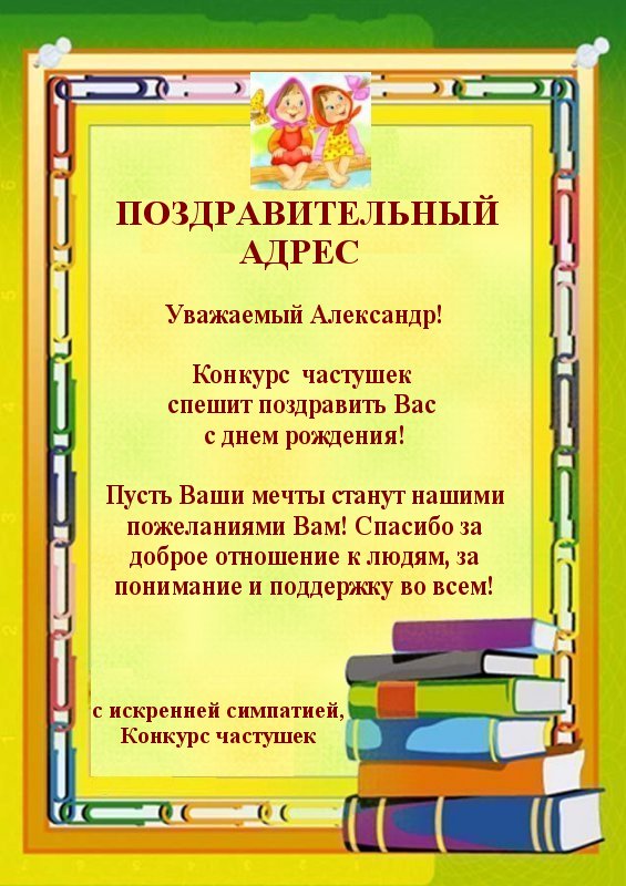 Благодарим Вас, Александр, за великолепный Конкурс Лимериков! Пусть всё в Вашей жизни будет благополучно и прекрасно! Чтобы всё задуманное сбывалось, родные и близкие всегда радовали, друзья поддерживали во всём! Счастья и сохранения Вашего оптимизма!
