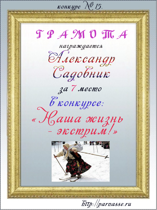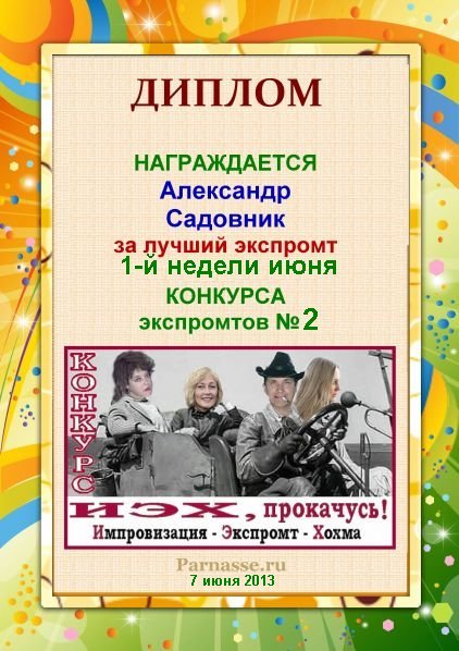 Александр, поздравляем с Победой в Блиц-Турнире по частушкам /от 5.06.2012/