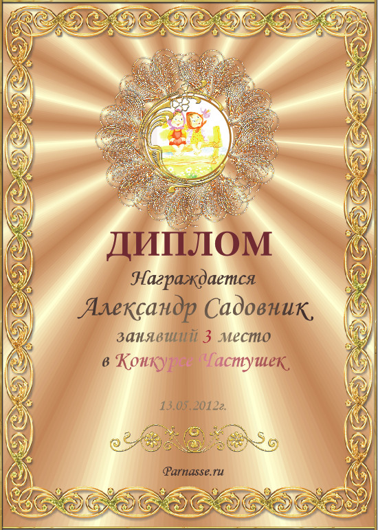 Диплом за 1 место в конкурсе лимериков №10 (06.05.2012.)