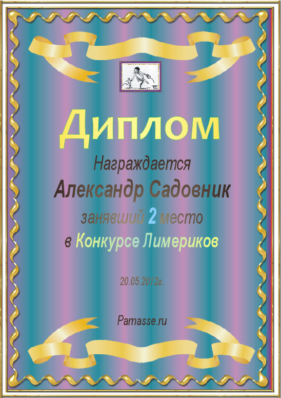 Диплом за 2 место в конкурсе лимериков №12 (20.05.2012.)