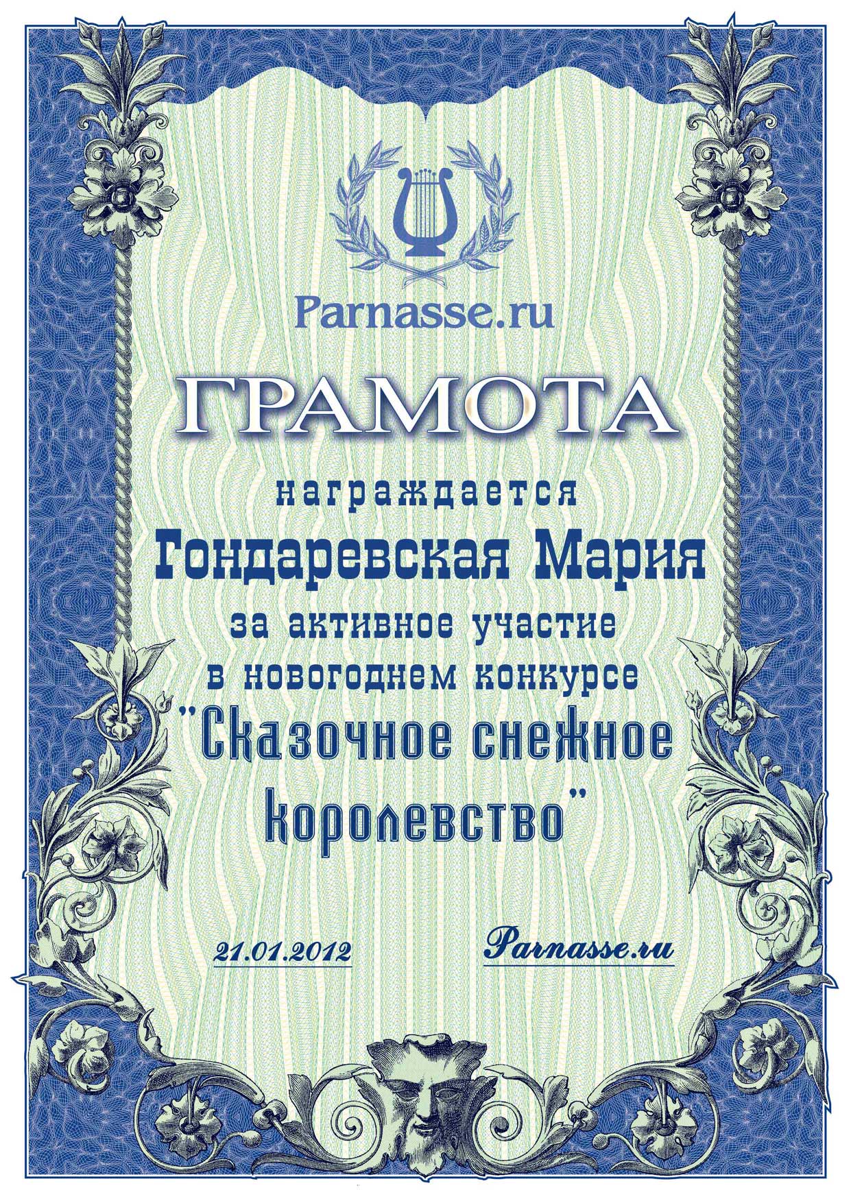 ![]() Золотой Кубок "Гордость Парнаса!"