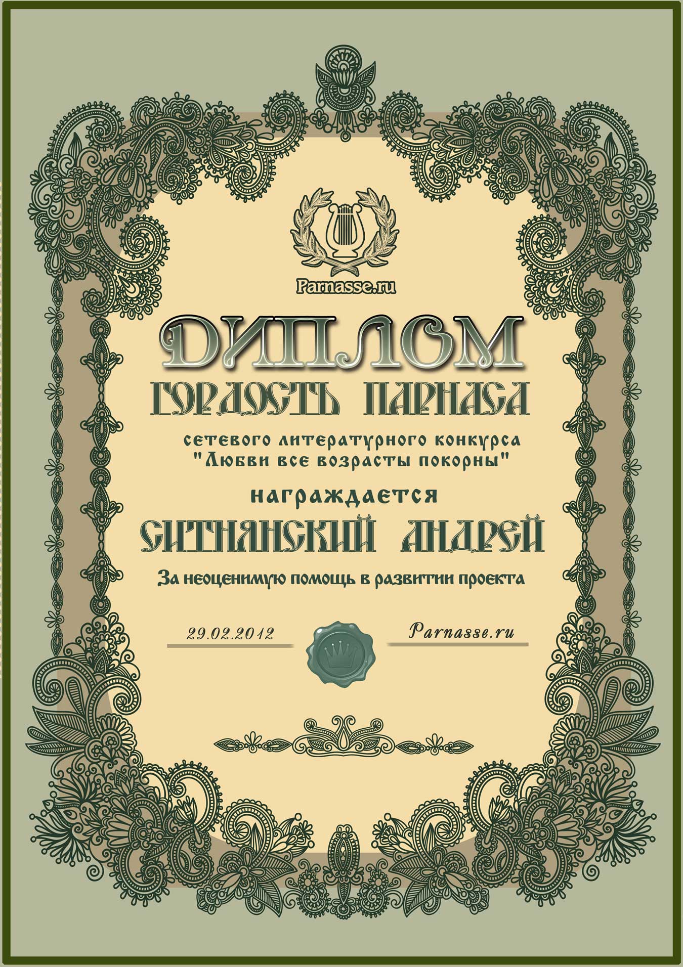 За безграничное доверие и уважение Авторов! За проявленные качества Лидера и вклад в развитие сайта "Парнас"!