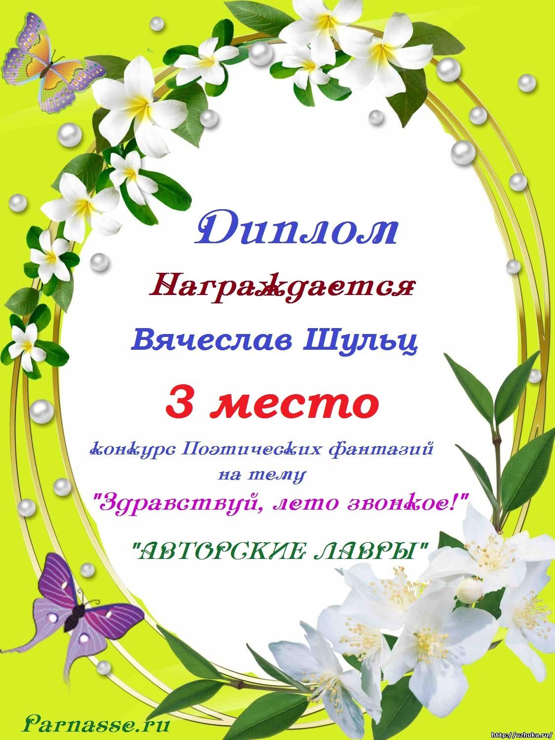 Победителю конкурса:"Здравствуй,лето звонкое!"