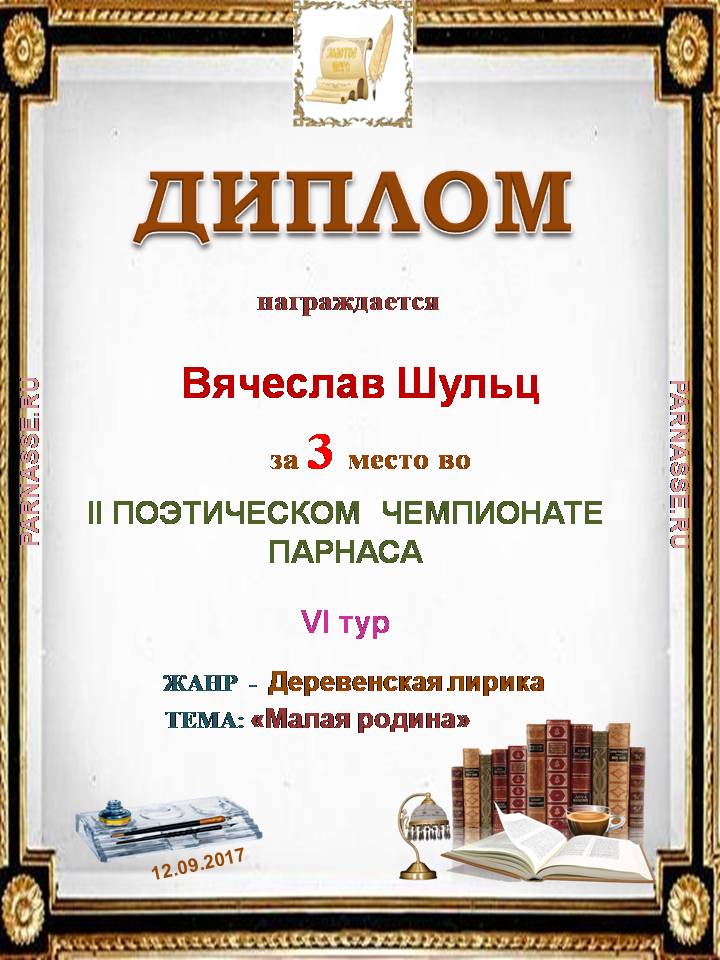 За 3 место в 3 туре III Чемпионата Поэзии