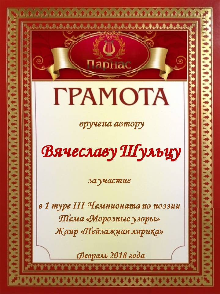 Третье место по итогам серии зимних конкурсов " Белая сказка зимы", в номинации «Поэзия». Поздравляем с прекрасной победой!