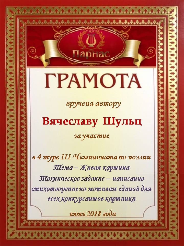За участие в 4 туре III Чемпионата по поэзии