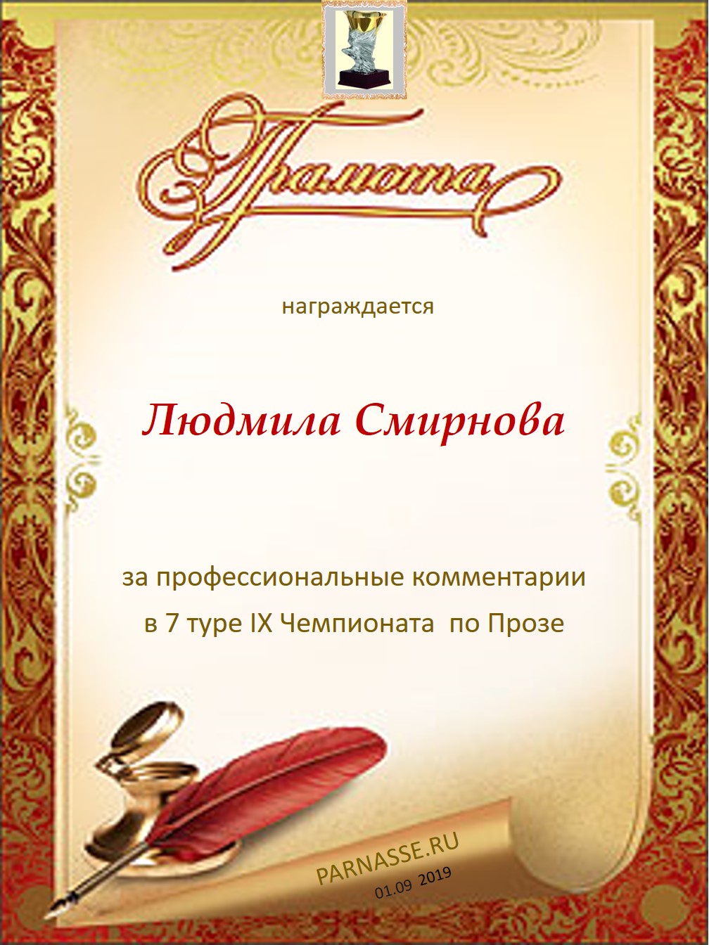 Подарок от: Чемпионат Парнаса по прозе, 8 сентября 2019: