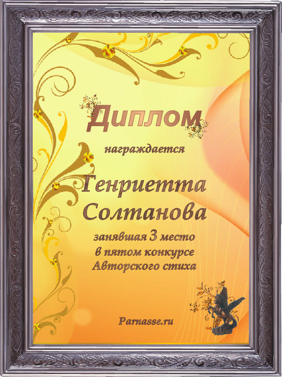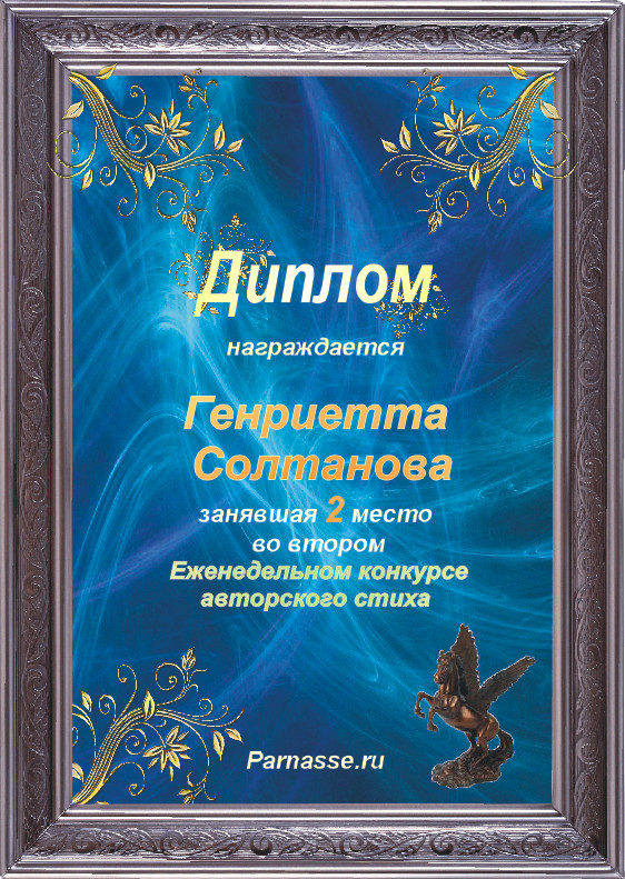 ![]() ![]() ![]() ![]() Медаль за ВТОРОЕ место в конкурсе авторского стиха!
