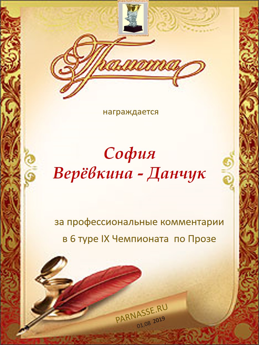 Большое спасибо за профессиональные и объективные комментарии в 6 туре X Чемпионата Парнаса по Прозе!