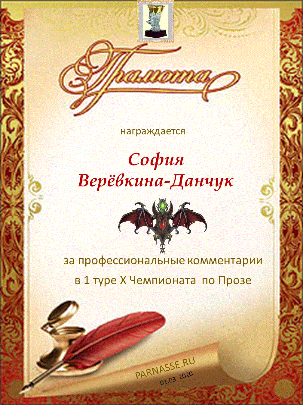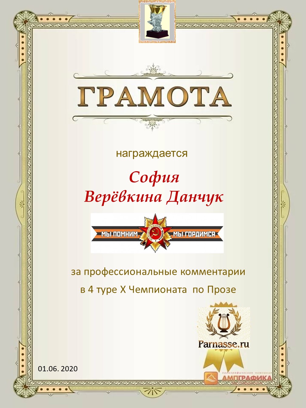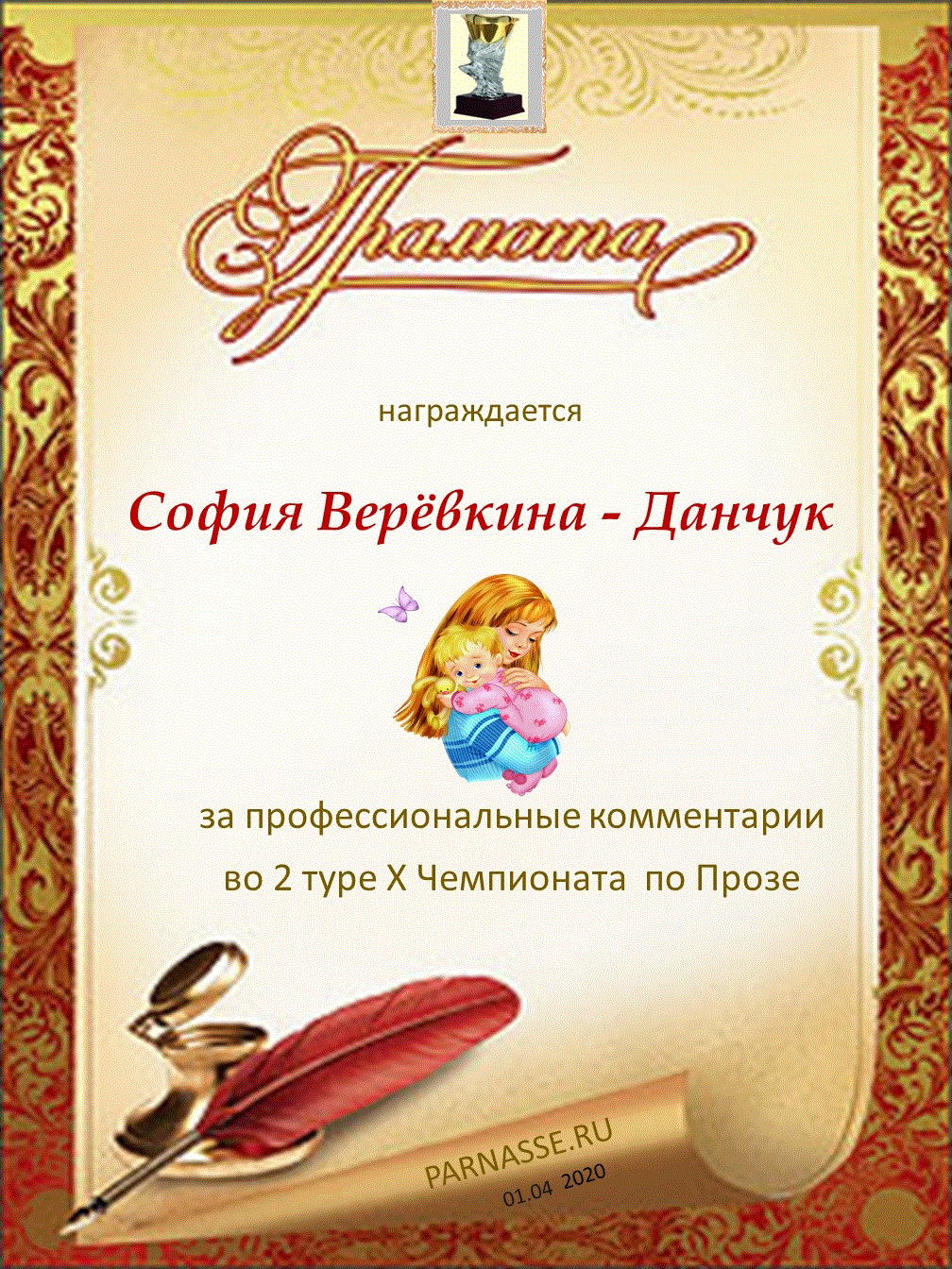 Большое спасибо за профессиональные и объективные комментарии в 4 туре X Чемпионата Парнаса по Прозе!