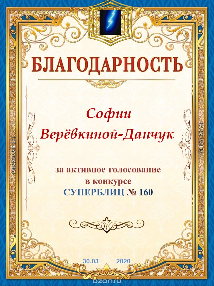 Благодарность за активное голосование в 160 конкурсе СУПЕРБЛИЦА!СПАСИБО БОЛЬШОЕ!