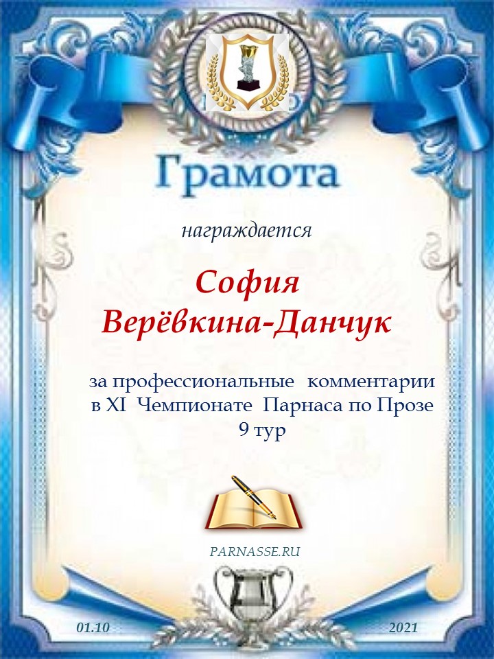 Благодарю за профессиональные комментарии в 9 туре XI Чемпионата Парнаса по Прозе!