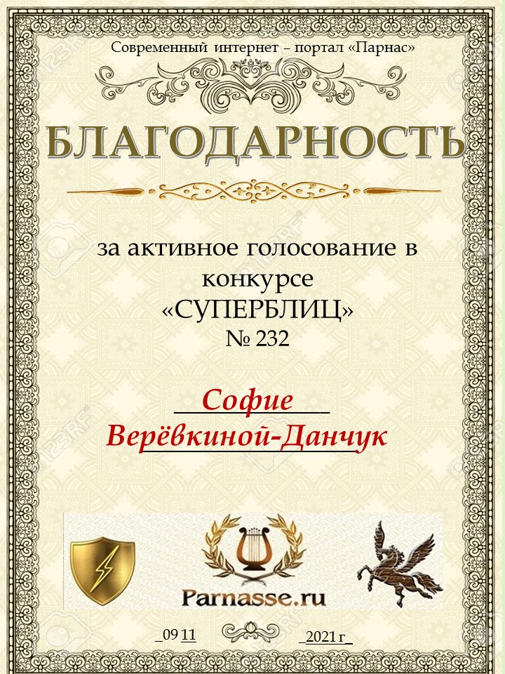 Благодарность за активное голосование в 232 конкурсе СУПЕРБЛИЦА!СПАСИБО БОЛЬШОЕ!