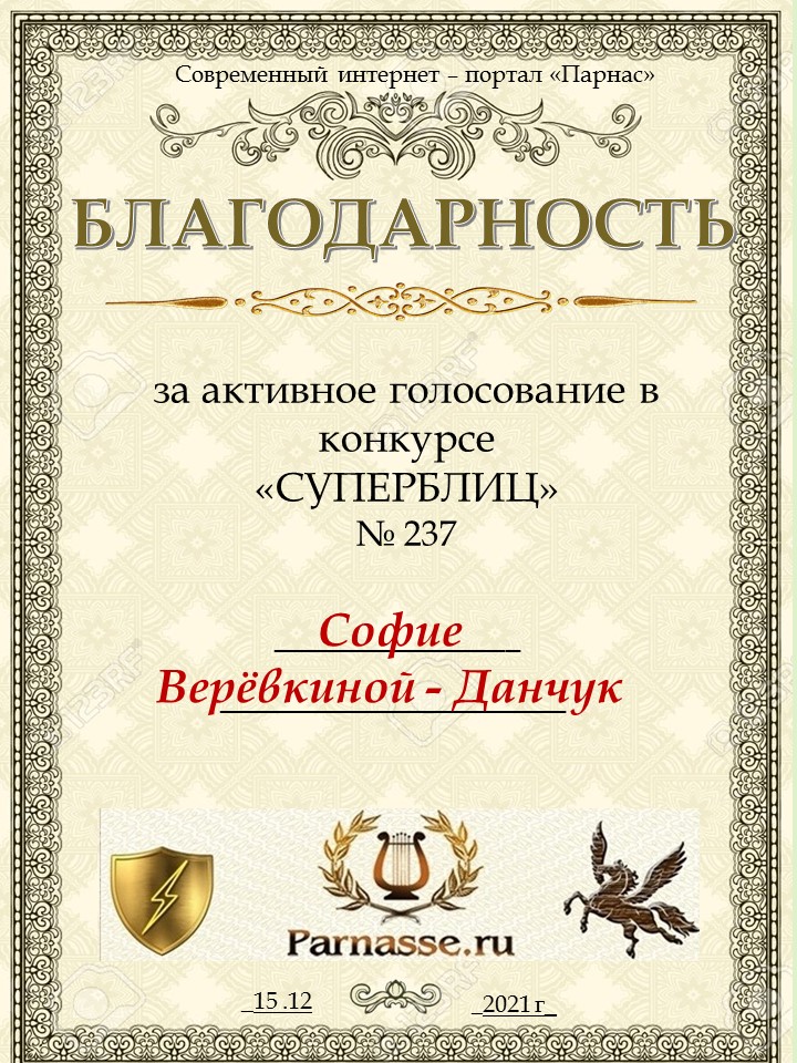 Благодарность за активное голосование в 237 конкурсе СУПЕРБЛИЦАСПАСИБО БОЛЬШОЕ!