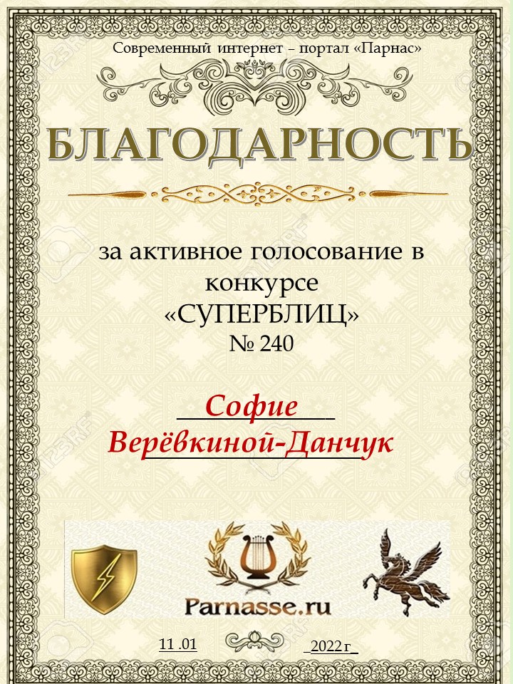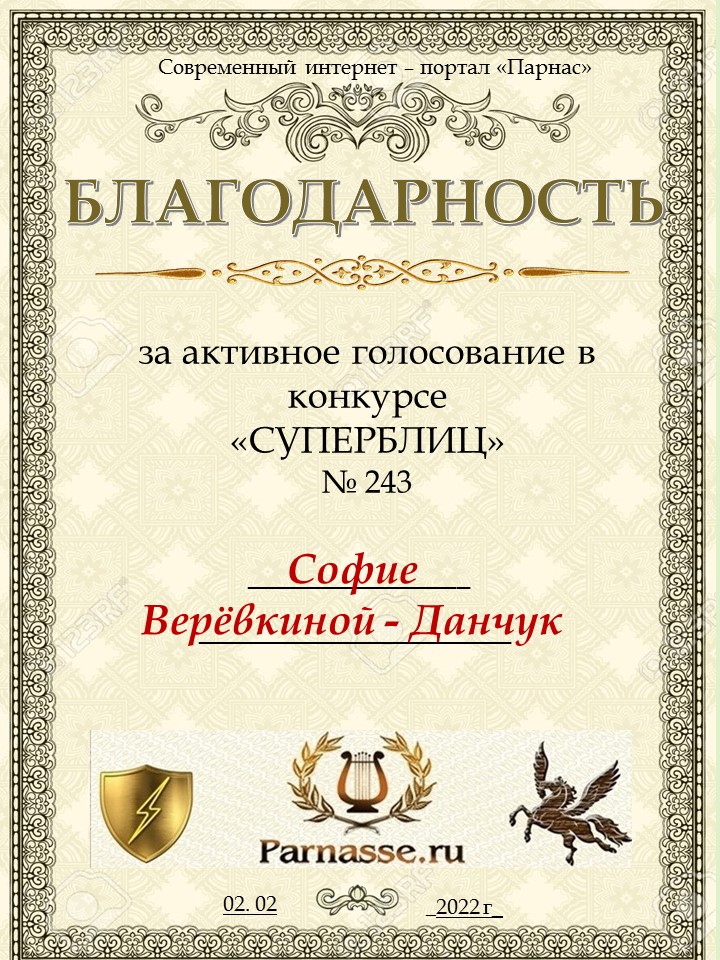 Благодарность за активное голосование в 243 конкурсе СУПЕРБЛИЦАСПАСИБО БОЛЬШОЕ!