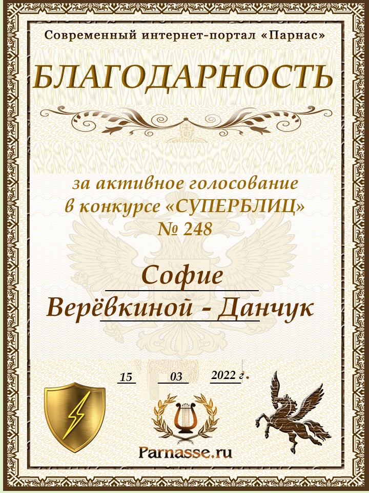 Благодарность за активное голосование в 248 конкурсе СУПЕРБЛИЦАСПАСИБО БОЛЬШОЕ!