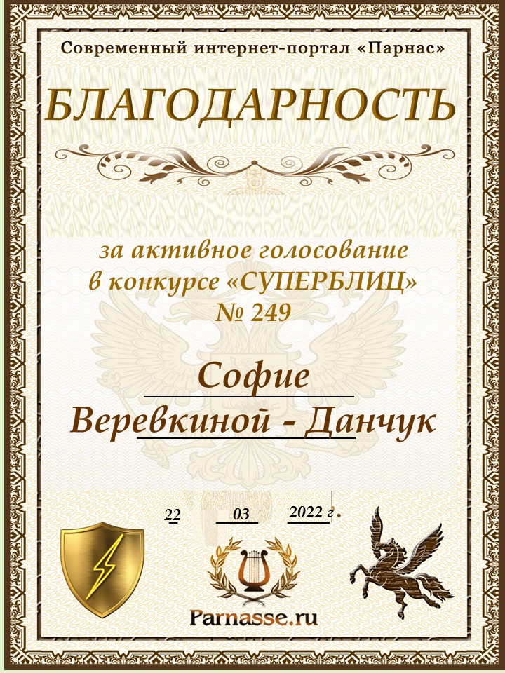 Благодарность за активное голосование в 249 конкурсе СУПЕРБЛИЦАСПАСИБО БОЛЬШОЕ!