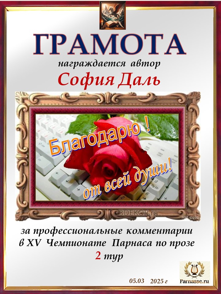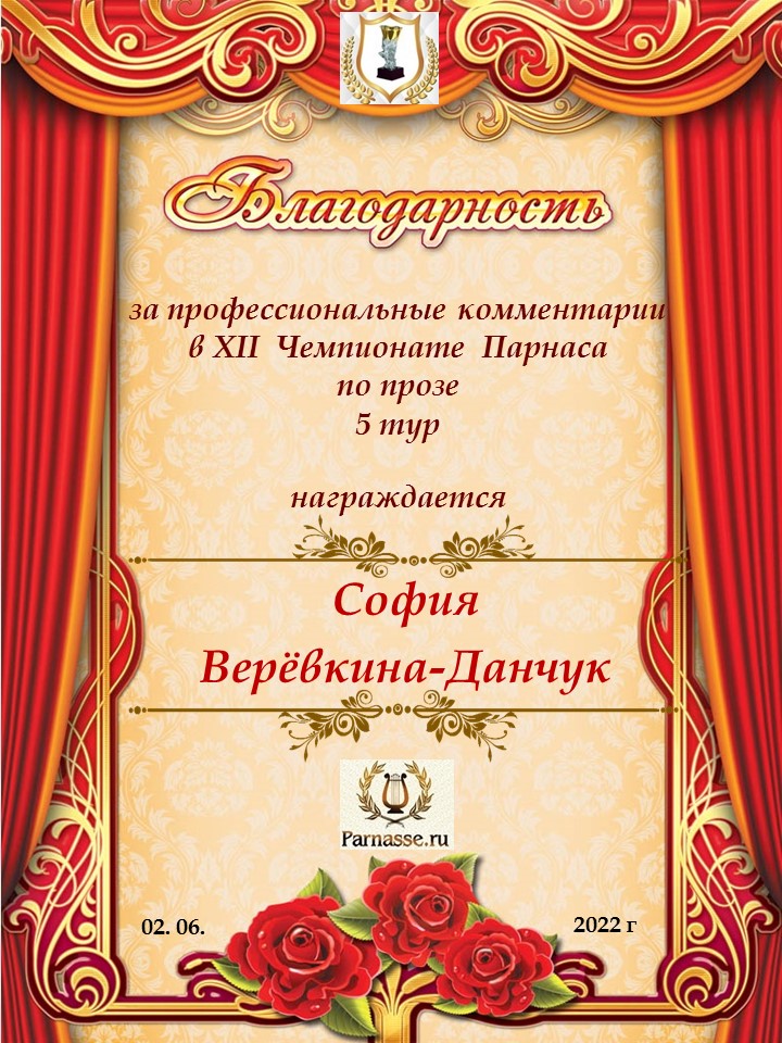 Большое спасибо за профессиональные и объективные комментарии во 2 туре X Чемпионата Парнаса по Прозе!