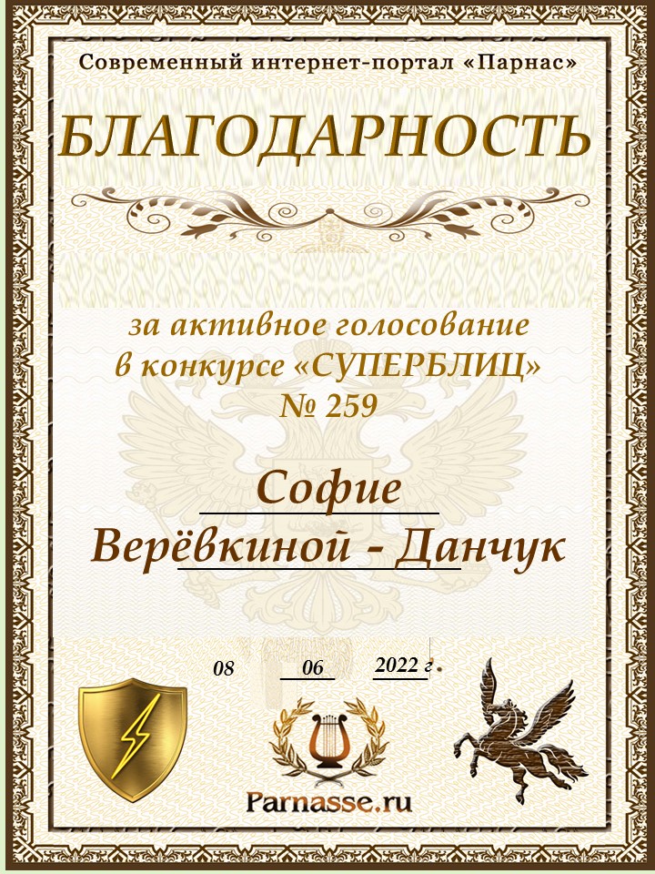 Благодарность за активное голосование в 259 конкурсе СУПЕРБЛИЦАСПАСИБО БОЛЬШОЕ!